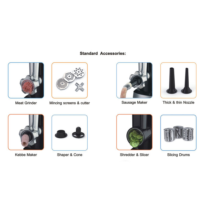 ● With meat grinder, sausage maker, kebbe maker, shredder & slicer